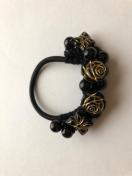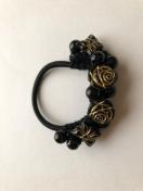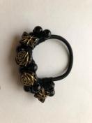 キラキラビーズと薔薇と蝶を盛り盛り編みこんでヘアゴムを作りました。