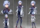 “アヤナミレイ(仮称)”がパーカーを羽織ったプラグスーツ姿を忠実にフィギュア化。儚さとあどけなさが同居したイラストのニュアンスを巧みな造形で再現。プラグスーツとライトグレーのパーカーの色彩・フォルム・質感の対比も見どころ。クリアー素材に淡いグラデーション塗装を施した頭髪も美しい仕上がりでキャラクターの透明感を強く印象づけています。
