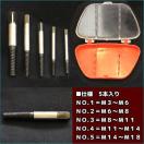 折れたボルトの中心にドリルで穴を開け、この逆タップセットをねじ込めば(逆ネジになっていますので)折れたボルトを取る事ができます。