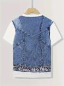 グラフィックプリントクルーネックTシャツ、春夏用カジュアル半袖トップス、婦人服