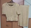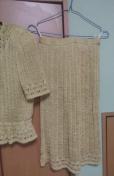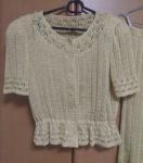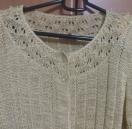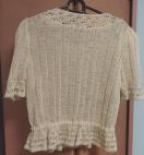 サマーニットのレース編みのカーディガンタイプのパフスリーブニット