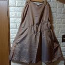 左ファスナー、一部シャーリングデザイン。光沢のあるオーロラカラーのロングスカート。