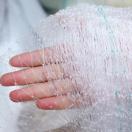 農業資材の防鳥ネットです。幅5mまで展開でき、束状にまとめた時の長さは5mです。