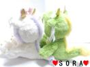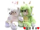 可愛い干支辰年の着ぐるみコスチュームを着たミッキー&ミニーのペアぬいぐるみ