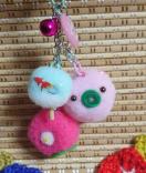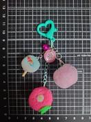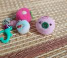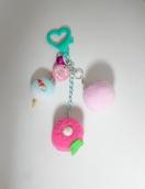 ポンポンで作った蚊取り豚、うちわ、朝顔の練りきり風マスコットをジャラジャラチャームにしました!