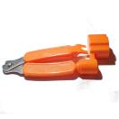 ニッパーで弦を切り、ペグを回し、アコースティックギターのブリッジピンを抜く3つの機能が付いている便利なギターアクセサリーです。