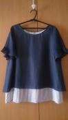 ホワイト×ネイビーのピンストライプの下地に、ネイビーのシアー素材の重ねデザインになっています◎