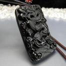 AAA+オブシディアン昇竜精工彫りペンダントトップ