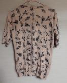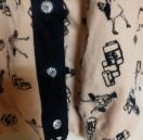 ベージュピンクに黒のフリルやキラキラのボタンがレディライクなカーディガン