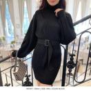 ウエストベルトがセットになったタートルネックニットワンピース。