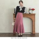立体的なパターンで仕立て、裾にボリュームを出したマーメイドスカート。