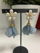 ハンドメイド フラワータッセルのチャームを使用したフラワーパールのピアスになります。