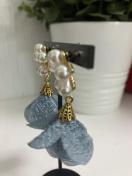 ピアスのフラワーパールがインパクトあります。