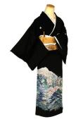 ・十日町友禅作家【岡村蒼風】暈し染め 風景文 比翼付の