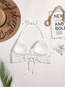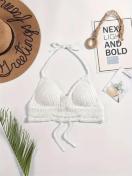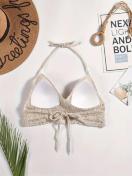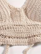 プレーンかぎ針編みタイネックボヘミアンビーチトップ、ホルターバックレス中空パッドトップ、レディース水着&衣類