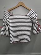 7分袖より少し短いくらいの袖には赤いリボンが可愛いです!