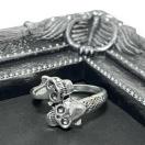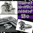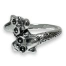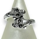 2つのスカルヘッドが付いたスネークデザインがインパクト抜群なメタルリング