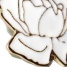 白色にゴールド色の緑色で、清潔感のある可愛いバッジです。