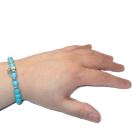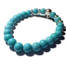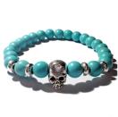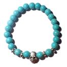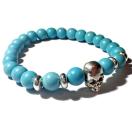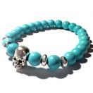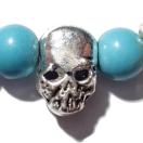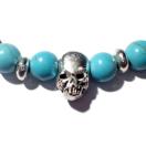 ターコイズブルーの石の数珠に、シルバー色のスカルがかっこいいブレスレットです。