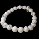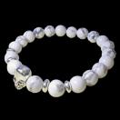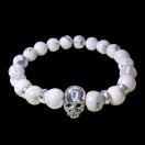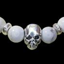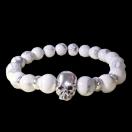 白色の石の数珠に、シルバー色の重厚感のあるスカルがかっこいいブレスレットです。