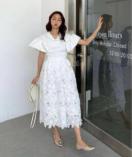birthdaybashバースデーバッシュフラワーレースボリュームスカートホワイト白