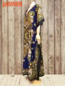 ざっくりしたロングポンチョの様なデザインのアジアンペーズリー柄ロングワンピです。