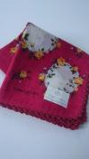 落ちついた赤地に薔薇の模様がとても素敵なハンカチです♪