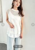 Gジャンや、透け感のあるブラウス、Tシャツなどのインナーとしても重宝する、袖なしキャミはオールシーズン大活躍。