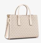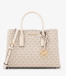 1日の必需品を収納できるエフォートレスでシックなRUTHIE サッチェル スモール - MKシグネチャー。アイコニックなシグネチャーロゴにスムーストリミングを施し、ゴールドトーンのスタッズをあしらったシルエットが洗練された魅力を放ちます。スマートにトップハンドルで持ち運んだり、外出時にはクロスボディにしたり気分に応じてお使いいただけます。