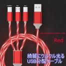 綺麗にクルクル光るUSB分配ケーブル 3本同時充電ケーブル USBケーブル 3A 急速充電 レッドイルミLED付