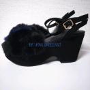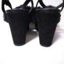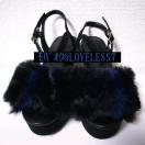 ◆RANDA(ランダ)レディース ミックスファーウェッジサンダル 定価7590円 Sサイズ 22cm ~ 22.5cm ヒール8cm ブラック×ブルー
