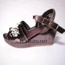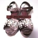 ◆RANDA(ランダ)レディース ベロアビジューウェッジサンダル 定価8140円 Sサイズ 22cm ~ 22.5cm ヒール7.5cm グレージュ