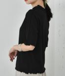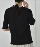 レトロガール 無地テレコ五分袖カットソー ブラックです。