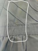 胸当て部分の綿レースとVの字のタック、ウエストの切り替えと、凝った作り