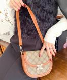 配色ステッチのフェイクレザーにゴールドパーツが映えるサドルバッグ
