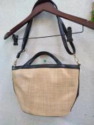 ベージュの藁?のような夏素材に黒縁の、2wayのバッグです。