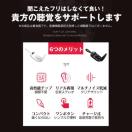ワイヤレスイヤホンのような見た目で目立たない。ワンタッチで操作簡単。