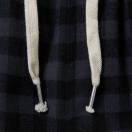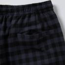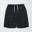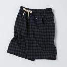 ポリエステルとレーヨンの混紡糸を使用したソフトな風合いのチェック柄のショーツです。股上を深めにし、ワタリと裾口にゆとりを持たせた膝丈のゆったりしたシルエットです。ウエストのサイズをシャーリングのゴムとスピンドルで調節可能。前後の身頃にポケットを付けています。