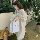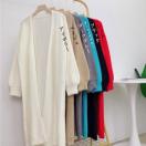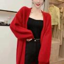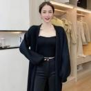 ゆったり羽織れるロング丈のボリュームスリーブトッパー仕様ニットカーディガンです