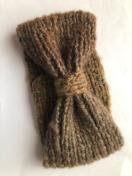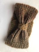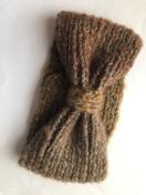 ウール100%の毛糸とブラウン系のグラデーションモヘア 調の毛糸2本取りでターバンを編みました。