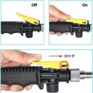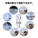 ・ノズル先端部にて、水の角度の調整が可能。一点集中型清掃のジェット水流はもちろん、広範囲清掃用の霧状スプレーへも変換可能。ガーデニングや農作業での散水や肥料の散布等にも活躍します
