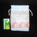 ・白の綿アイレットコットン地にオレンジ色の花柄チュールレースを被せた巾着。レース下部分(花がある箇所)縫い付けてません。画像で確認ください。