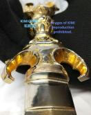 剣の部分の材質:真鍮製の剣に銀色のニッケルメッキ加工がされていると思います。一部メッキが剥がれて金色になっている箇所がございます。