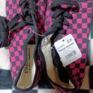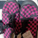 ピンクとブラックのチェックが可愛い、カジュアルなシンプルスニーカーです。
