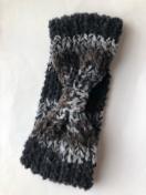 ウール100%の細めの毛糸とウール90%アクリル10%の軽めの毛糸2本取りでターバンを編みました。