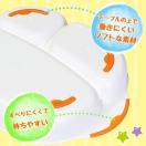 裏面には、テーブルの上で動きにくく、音もおさえるソフト素材を使用。持ち手も滑りにくく持ちやすい形状にしています。
