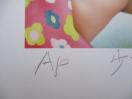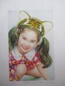 出品作品の原画はエアーブラシ作品です。出品作品は限定版画で、エディションAP、タイトル「少女とシャポー」、石川吾郎氏による鉛筆での直筆でエディション、タイトル、サインが入っています。