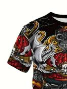 斬新な3Dサムライ柄プリントメンズクルーネック半袖Tシャツ、普段着やバケーションリゾートに最適なカジュアルサマーTシャツ