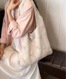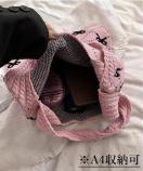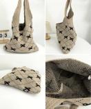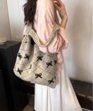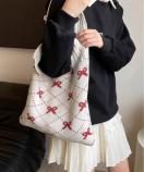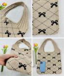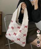 可愛いリボン柄がアクセントになり、コーデにこなれ感をプラスするニットトートバッグです