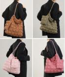 キルティング加工を施した、上品で優しい雰囲気のチェーントートバッグです。